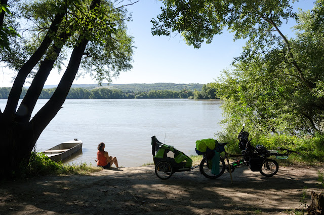 Jednu noc sa nám darí uchmatnúť si rybársky flek vedľa Dunaja. Okrem neskonalej romantiky jemne žblnkajúcej masy vody a západu slnka nad hladinou to prináša aj množstvo komárov, vytvárajúcich auru okolo nás. Náš malý vodník, ktorého priťahuje každá vodná hladina ako magnet, testuje či sú naše reflexy permanentne v strehu. Hlavnou výzvou tohoto miesta je teda udržať všetkých členov výpravy v suchu a nažive :). Ráno si ešte užívame očistný kúpeľ a ponímame to ako potvrdenie našej a hlavne juniorovej “slovačnosti” (krst v slovenskom veľtoku :)). Aj naše šatstvo prechádza národniarskou očistou a pri programe “ručné pranie mama” pomáha aj Jančo, ktorý jednotlivé kúsky vyťahuje zo skladacieho vedierka a hádže ich vedľa do blata. Okrem toho nabieha do vedierka aj celý a tvári sa, že je to jeho bazénik.